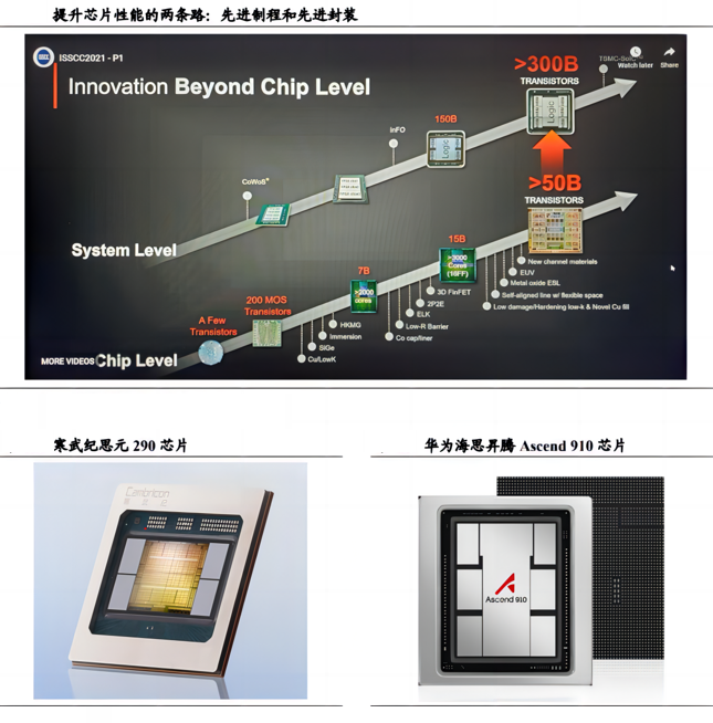 1. 先進制程受限,先進封裝/Chiplet提升算力,必有取舍。在技術(shù)可獲得的前提下,提升芯片性能,先進制程升級是首選,先進封裝則錦上添花。